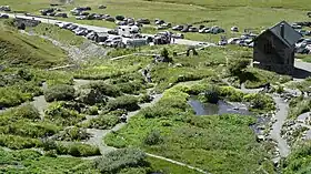 Le col vu de l'ouest avec l'hospice du Petit-Saint-Bernard. | ||||||