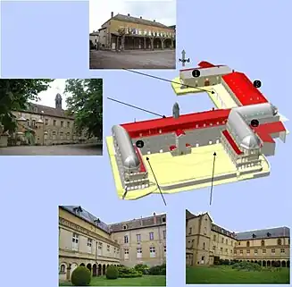 L’aile 2 est consacrée à la chapelle et ses différentes entrées (intérieures et extérieures). Le bâtiment 3 abrite des classes et des salles d’études au rez-de-chaussée, des dortoirs au premier étage. Le bâtiment 1 est la ferme de l’institution.