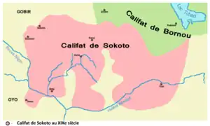 Durant le premier tiers du XIXe siècle, des changements particulièrement importants interviennent en Afrique de l'Ouest avec la mise en place de gouvernements musulmans à l'issue de luttes ouvertement prosélytes présentées comme des actions de djihad[37]. Ces djihad sont menés par des membres des élites intellectuelles et religieuses peules même s'il ne s'agit pas d'un phénomène ethnique[37].