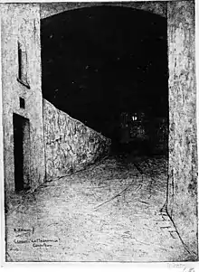 En 1875, il se met à la gravure, expérimentant l'eau-forte et la lithographie : il produit près de 700 pièces jusqu'en 1918, dont un bon nombre originales, représentant des paysages urbains français[1].