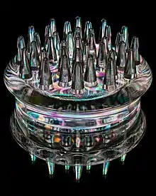 - Applications en architecture : la construction d’édifices architecturaux ou de génie civil nécessite la connaissance fine des contraintes au sein de la structure, afin d’en prévenir de possibles ruptures. Par exemple, en réalisant une maquette miniature de l’édifice en matériau photoélastique, il est possible d’accéder à des données pour étudier et comparer a posteriori les méthodes de construction des cathédrales de Chartres et Bourges[4].