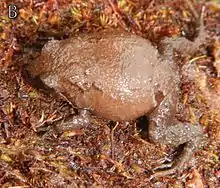 - (en) Référence AmphibiaWeb : espèce Phrynopus badius (consulté le )