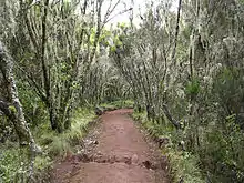 Depuis le début du Quaternaire, l'hémisphère nord a subi vingt-et-un âges glaciaires majeurs ressentis jusqu'en Afrique de l'Est[27]. Les traces de ces refroidissements climatiques en Afrique de l'Est sont observées au Kilimandjaro, au mont Kenya, dans la chaîne du Rwenzori et au mont Elgon. Ce sont toutes des poches isolées d'écosystèmes alpins similaires avec une faune et une flore identiques. Cela signifie que cet écosystème a dû être plus étendu, à faible altitude, et recouvrir chacune de ces montagnes[31]. Cependant, des poches de l'écosystème actuel des plaines ont dû subsister, sans quoi les espèces animales de ce milieu seraient éteintes[32]. Une explication alternative suggère que sur cette échelle de temps de plusieurs millions d'années, la probabilité que des tornades aient transporté la flore et la faune entre les montagnes est forte[33].