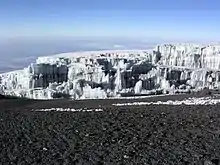 Aspect acéré caractéristique de la glace au sommet du Kilimandjaro.