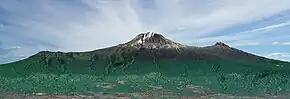 Le Kilimandjaro formé du Shira (à gauche), du Kibo (au centre) et du Mawenzi (à droite).