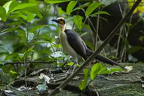 - (en) Cet article est partiellement ou en totalité issu de l’article de Wikipédia en anglais intitulé « White-necked Rockfowl » (voir la liste des auteurs).