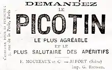 Le dépôt de l’entreprise se trouvait à Paris, à la fin du XIXe siècle. Le siège se trouvait quant à lui en région parisienne. La marque Picotin est lancée par Fernand Moureaux (créateur aussi de la Suze) et mentionnée dans les annuaires aux environs de 1892. La marque ne semble pas pour autant avoir disparu au début du XXe siècle.