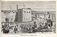 Avec la fin de l’espoir de reprendre Québec s’effondre le moral de la population. Encouragés à déserter par les proclamations anglaises<[60], les miliciens préfèrent rentrer chez eux avec la promesse que leurs biens seraient respectés, à la différence des Acadiens. Les troupes françaises tentent diverses opérations défensives au fort Lévis et à l’Isle-aux-Noix mais l’héroïsme de ces combats ne peut compenser la vaste supériorité numérique et matérielle anglaise. Les généraux britanniques pensaient prendre la colonie en mai. Elle tiendra jusqu’au 8 septembre. Assiégés dans Montréal, les 2400 hommes qui restaient à Lévis souhaitent se retrancher sur l’île Sainte-Hélène et y mener un dernier combat pour l’honneur[61]. Vaudreuil, soucieux d’épargner des souffrances inutiles aux habitants sous sa responsabilité, s’y oppose et négocie la reddition de la Nouvelle-France et la fin des combats[62]. S’il obtient des garanties que les Canadiens ne subiront pas le sort des Acadiens, Vaudreuil se voit refuser les honneurs de la guerre pour les troupes françaises. Humilié, le grand militaire qu’est le chevalier de Lévis ordonne de briser les fusils et de brûler les drapeaux pour éviter d’avoir à les remettre aux Britanniques[63]. Il s’embarque pour la France avec les survivants des forces françaises le 18 octobre.