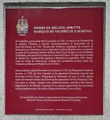 Pierre de Rigaud, plaque Vaudreuil-Dorion, Commission des lieux et monuments historiques du Canada.1
