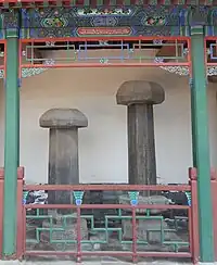 - (en) Cet article est partiellement ou en totalité issu de l’article de Wikipédia en anglais intitulé « Dharani pillar » (voir la liste des auteurs).