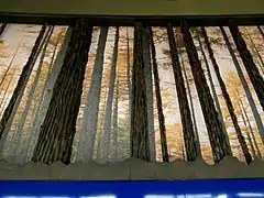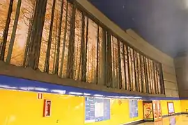 Le vestibule intérieur de la station est décoré par un mur métallique de 25 m de long sur 5 m de haut qui représente une pinède[6].