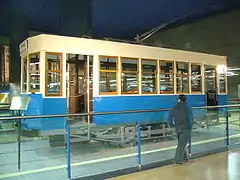 D'autre part, il abrite, en référence aux anciens tramways de Madrid, le tram 477. Produit en 1908 par la Société franco-belge La Croyére, suivant le modèle Charleroi II. Il a été rénové en 1935 et 1943 pour assurer son service jusqu'en 1962. Il est remis en état de marche en 1971 pour participer aux commémorations du centenaire du tramway de Madrid avant d'être définitivement remisé en mai 1972 lors de la fermeture du réseau de tramway d'origine de la ville. Cette voiture a été utilisée pour le tournage de plusieurs films et notamment le Docteur Jivago sortie en 1965. Avant d'être exposée dans la station, il la voiture a été restaurée, dans l'atelier des FAC, à Saragosse[5].