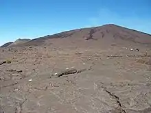 Le piton de la Fournaise est constitué d'un large dôme[Notes 1] situé au milieu d'une grande zone d'affaissement appelée enclos Fouqué.