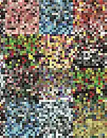À chaque pixel est associée une couleur, usuellement décomposée en trois composantes primaires par synthèse additive : rouge-vert-bleu.