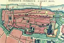 De l'époque gallo-romaine subsiste un important vestige sous le forme d'un amphithéâtre sur lequel nous possédons peu d'informations vraiment fiables. Son existence, si elle n'est pas spéculative, n'a d'abord été que le résultat d'une supposition ébauchée sous la Révolution avant sa disparition totale en 1833. On estime que le bâtiment faisait entre 100 et 110 mètres de diamètre, sans que nous sachions avec certitude si les gradins étaient disposés en cercle complet ou en demi-cercle. En outre, l'identification même de l'édifice pose problème. Le Courrier patriote du a prématurément parlé d'amphithéâtre, alors que l'édifice ressemblait davantage à une véritable arène[12]. De fait, les dénominations des rues alentour conservées depuis des décennies sont assez révélatrices : rue du Cirque, rue des Gladiateurs… La multiplication de plans et de croquis réalisés depuis la fin du XVIIIe siècle ont fait perdre jusqu'à aujourd'hui le véritable plan du site. Cependant, l'étagement naturel se prêtait sans aucun doute à un tel type de construction[11].