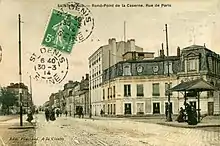 ![]() La place de la Caserne et la rue de Paris, aujourd'hui rue Gabriel-Péri. | |||