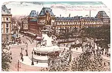 La caserne du Château-d'Eau de la Garde Républicaine avant la Première Guerre mondiale, ainsi que des tramways vers la banlieue est.