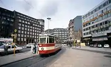 La Commerzbank (Orientation nord-est) - Le troisième angle arrondi (occupé par une filiale de la Commerzbank désormais fermée) est créé en 1985/1986 pour rappeler les deux grands complexes en briques opposés.