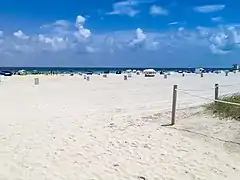 Les plages de Miami de la presqu'île de Miami Beach en Floride, longent sur plusieurs dizaines de km les grands boulevards Collins Avenue ou Ocean Drive, de North Beach (en), Mid-Beach (en), et South Beach (SoBe), face à l'océan Atlantique.