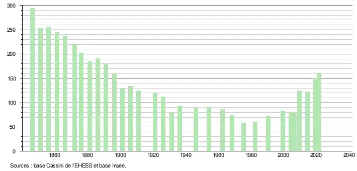 - Population municipale légale en vigueur au 1er janvier 2024, millésimée 2021, définie dans les limites territoriales en vigueur au 1er janvier 2023, date de référence statistique : 1er janvier 2021.