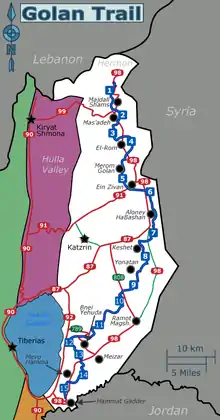 Le plateau du Golan (en arabe : الجولان, al-Jūlān, en hébreu : גולן, Golan), est un territoire syrien occupé dans le Golan depuis la guerre des Six Jours. Ce territoire a été annexé par le gouvernement israélien à la suite de la loi votée par les députés israéliens (63 voix pour sur 120) le 14 décembre 1981. Cette annexion a été condamnée et considérée comme illégale par la communauté internationale dans le cadre de la résolution 497 du Conseil de sécurité des Nations unies adoptée à l'unanimité le 17 décembre 1981[3].