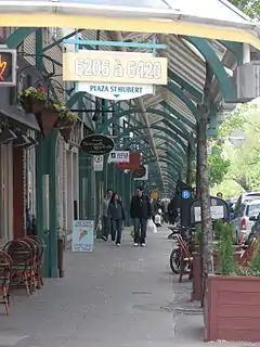 La marquise (verrière) de la Plaza St Hubert installée en 2020 lors des travaux majeurs de modernisation, au niveau de la rue Jean Talon.Créée en 1959, la Plaza se caractérise depuis 1984 par sa marquise (verrière) qui a été refaite en 2019-2020, abritant les deux trottoirs de la rue Saint-Hubert sur une distance de 1,2 km. Elle regroupe toutes sortes de commerces et de services (vêtements, chaussures, meubles, restaurants, librairies, magasin de photo, pharmacie, alimentation, bars, etc.).