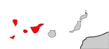 Elle se rencontre à Tenerife, à La Palma et à El Hierro, sa présence est incertaine à La Gomera.