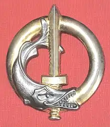 Brochet et bouée Bronze : cette insigne n'est pas pour les plongeurs mais se remet aux équipages d'engins qui ont réussi le stage de franchissement autonome. Homologué GS 48 "Equipage subaquatique".