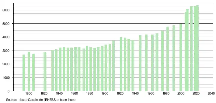 6 358 hab. (2021 en augmentation de 0,82 % par rapport à 2015en augmentation de 0,82 % par rapport à 2015)