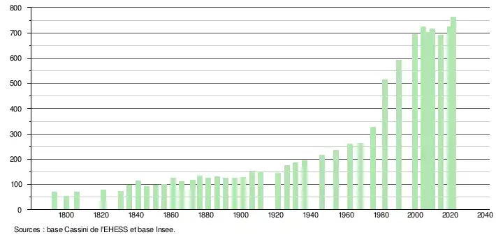 En 2021, la commune comptait 764 habitants[Note 6], en augmentation de 11,86 % par rapport à 2015 (Seine-et-Marne : +3,45 %, France hors Mayotte : +1,84 %).
