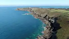 La pointe du Grouin, en Ille-et-Vilaine, est la pointe la plus au nord de Cancale. Dans son prolongement se trouve le phare de la Pierre-de-Herpin. Ce site de la Côte d'Émeraude accueille entre 600 000 et un million de visiteurs, les années de Route du Rhum dont la pointe sert à tracer la ligne de départ[1].