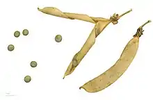 • Pisum sativum L. subsp. sativum var. arvense (L.) Poir. : pois protéagineux, pois fourrager ou pois des champs,