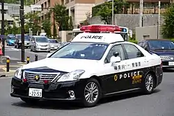 La police japonaise utilise près de 40 000 véhicules et motos, en majeure partie des Toyota Crown et des Nissan Crew. Tous les véhicules ont la même sérigraphie, à savoir une robe blanche et noir, excepté les véhicules des services de la circulation. Les véhicules des forces spéciales ou d'intervention revêtent une robe bleu métallisé.