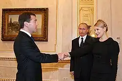 Finalement, les termes de cet accord imposent une augmentation moins sévère du prix du gaz. L'Ukraine paiera en pratique 95 USD les 1 000 m3, car les livraisons seront composées en partie par le gaz turkmène à 50 USD via une société mixte RosUkrEnergo dont les actionnaires ne sont pas clairement connus[5].
