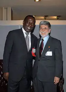 Le ministre des Affaires étrangères Cheikh Tidiane Gadio avec son homogue brésilien Celso Amorim au siège des Nations unies en