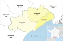 Le département français de l'Hérault est un département créé le en application de la loi du , à partir de l'ancienne province de Languedoc. Les 342 actuelles communes, dont presque toutes sont regroupées en intercommunalités, sont organisées en 25 cantons permettant d'élire les conseillers départementaux. La représentation dans les instances régionales est quant à elle assurée par 30 conseillers régionaux. Le département est également découpé en 9 circonscriptions législatives, et est représenté au niveau national par neuf députés et quatre sénateurs.