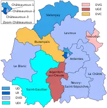| Châteauroux-2 | Jean-Yves Hugon | LR | Jean-Yves Hugon | LR | ||