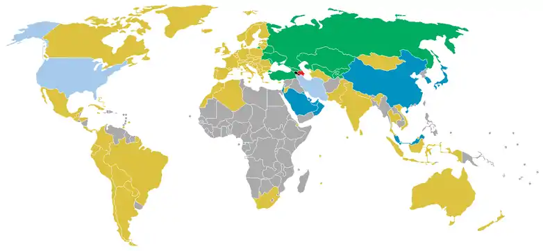 Les citoyens des pays suivants peuvent obtenir un visa pour l'Azerbaïdjan à l'arrivée valable pour 30 jours, disponible dans n'importe quel aéroport international[10],[11] :