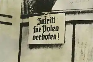 En Prusse, puis plus tard dans l'Empire allemand, les Polonais n'avaient pas le droit de bâtir des habitations, et leurs propriétés étaient la cible de rachats forcés des gouvernements prussiens puis allemands. Otto von Bismarck décrivit les Polonais comme « des animaux » et mit en place de sévères lois visant à leur expropriation au profit des Junkers prussiens. Les Polonais furent sujets à une vague d'expulsions forcées (Rugi Pruskie). La langue polonaise était bannie en public, et les enfants polonais violemment punis à l'école lorsqu'ils la parlaient (par exemple à Września à partir de mai 1901)[27]. Le gouvernement allemand finança et encouragea l'installation d'Allemands dans plusieurs régions dans le cadre de sa « Marche vers l'Est »[28]. Le Parlement prussien promulgua plusieurs lois contre les catholiques[29].