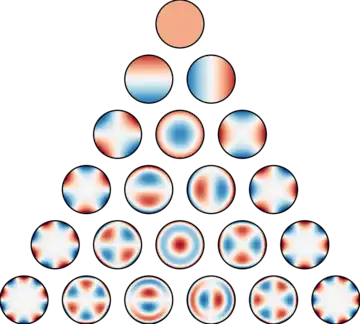 Les premiers modes de Zernike, avec les indices simples OSA/ANSI et Noll, sont présentés ci-dessous. Ils sont normalisés de telle sorte que : .
