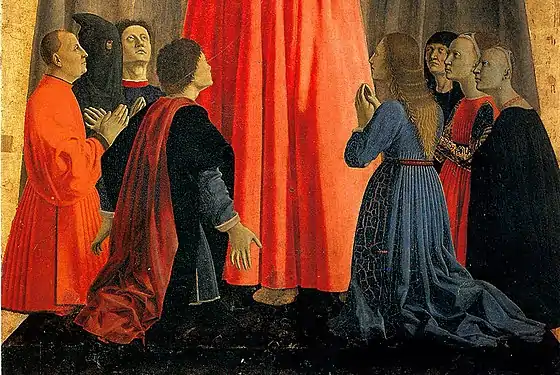 Une œuvre qui avait une influence significative sur Piero pour sa composition était le retable de Sassetta[4], peint pour l'église San Francesco à Borgo San Sepolcro entre 1437 et 1444.