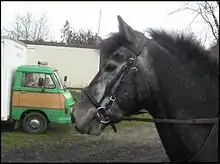 |   Meije du Garon, ponette français de selle, lors d'une compétition de saut d'obstacles. | |