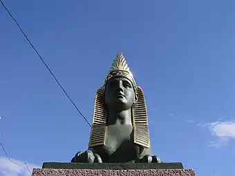 L'ancien pont suspendu à une travée, construit en 1825-1826 par les deux ingénieurs civils Wilhelm von Traitteur et Christianowicz, est un exemple de la vague d'égyptomanie du début du XIXe siècle. Le quai aux sphinx de Saint-Pértersbourg sera quelques années plus tard un autre exemple de cette vague, mais avec d'authentiques statues égyptiennes provenant de la tombe du pharaon Amenhotep III.