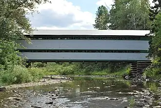Le pont couvert est en treillis de type town construit en bois[1]. Il a une longueur totale de 27,08 m et une largeur de 6,4 m[1].