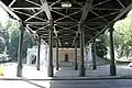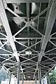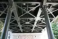 Ce pont à trois travées a une longueur totale de 31 m. Les appuis extrêmes sont matérialisés par deux culées en pierre ; chaque appui intermédiaire est assuré par une rangée de 4 fines colonnes en fonte. La structure du tablier métallique est constituée d’un réseau net de poutres longitudinales et transversales assemblées par rivetage. Un réseau « primaire », constitué de poutres (4 long. et 9 transv.) d’une hauteur de 75 cm et distantes de 3 m, repose directement sur les appuis. Un réseau « secondaire », dont les poutres ont une hauteur de 30 cm et sont distantes de 1,5 m, est placé sur le réseau « primaire ». Tous les assemblages sont réalisés par rivetage[1].