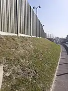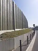 La passerelle métallique cyclo-piétonne, constituée de deux arches, se développe sur une longueur de 250 m et pèse 12 tonnes[12],[11]. Les structures anti-bruit aménagées sur le pont et ses abords se déploient sur une longueur totale de 500 m[19].