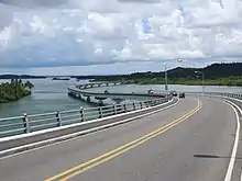 Le pont de San Juanico relie les îles de Leyte et de Samar, de la ville de Tacloban à la ville de Santa Rita. Il traverse le détroit de San Juanico[4]. Il s'agit du deuxième plus long pont enjambant une étendue d'eau de mer aux Philippines après le pont Cebu-Cordova[17], avec une longueur totale de 2,16 km[18]. Il comporte 43 travées en acier, la travée principale mesurant 192 m[6].