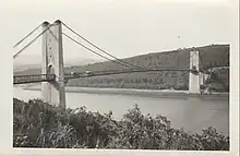 Le nouveau pont, basé sur ses piles d'origine, n'est terminé qu'en 1952. C'est un pont suspendu, comme le précédent, qui reprend les mêmes mensurations : longueur de 350 m, dont 272 m pour la portée principale. Malheureusement, la pénurie de matériaux de qualité à l'époque entraîne l'utilisation de ciment de mauvaise qualité. Le pont contracta alors le « cancer du béton » (alcali-réaction) et se trouva sous étroite surveillance à partir de 1992, année du constat. Il fut démoli bien après la mise en service du nouveau pont. Faute de budget, les travaux commencèrent début 2014 pour s'achever fin 2014. Il fut scié en plusieurs tronçons. Les culées construites aux deux extrémités du premier pont de 1925 furent conservées et servent désormais de belvédère.
