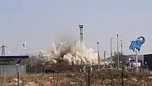 Le à 12 h, le pont est détruit par foudroyage. La mise en place du nouveau pont est réalisée par ripage en une seule pièce le samedi [3].