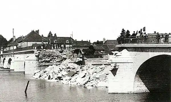 Durant la seconde guerre mondiale, deux arches sont détruites. Une première fois pour ralentir l'avancée des troupes allemandes. À cette occasion, le pont suspendu[Quoi ?], le pont de Rigny et le pont des chemins de fer vicinaux sont également détruits. Ce dernier ne sera par ailleurs jamais reconstruit. Le pont de pierre est détruit une seconde fois lors de la débâcle allemande pour tenter de freiner l'avancée américaine.